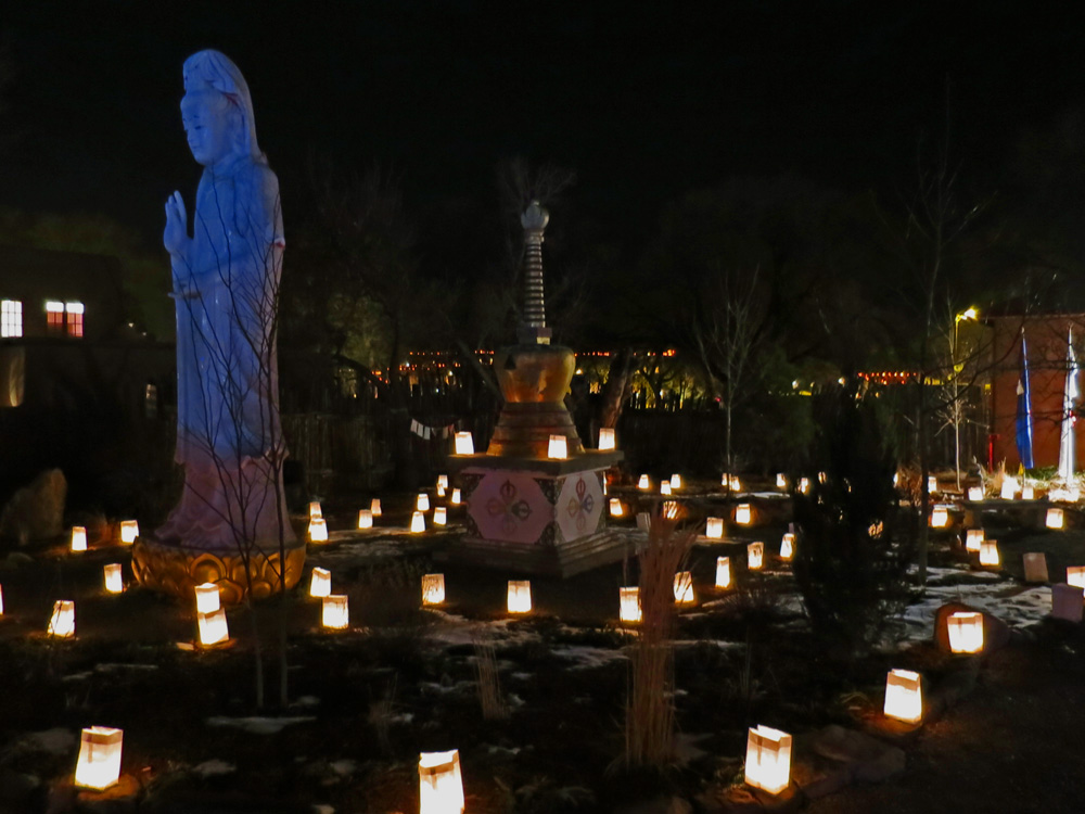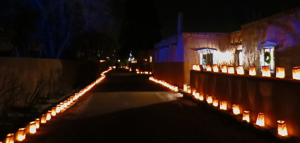 I lived in Santa Fe for four years in the 1990s and since then I’ve returned often, but until this Wednesday I’d never before witnessed the Christmas Eve Farolito Walk on Canyon Road. And what an enchanted experience it is!
