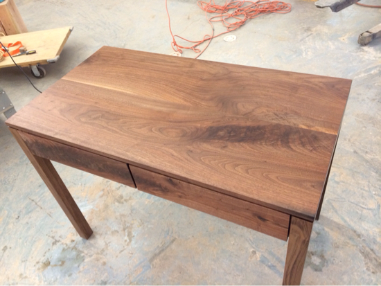 The following photographs chronicle the evolution of the walnut desk from salvaged lumber to museum-worthy, masterpiece composition ready desk. (Note: Click on any image for larger lightbox view.)